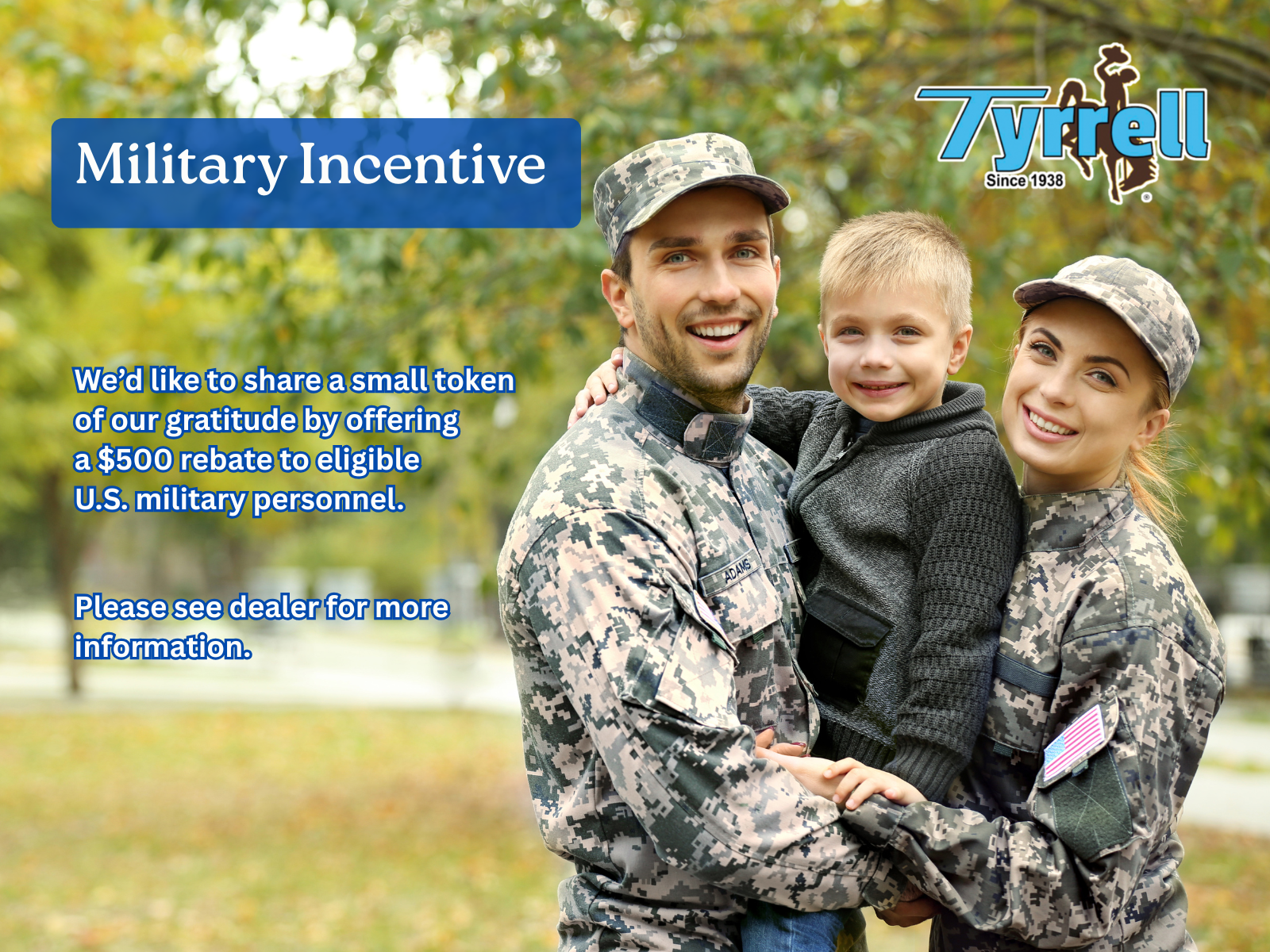 $500 Incentive to eligible US Military Personnel