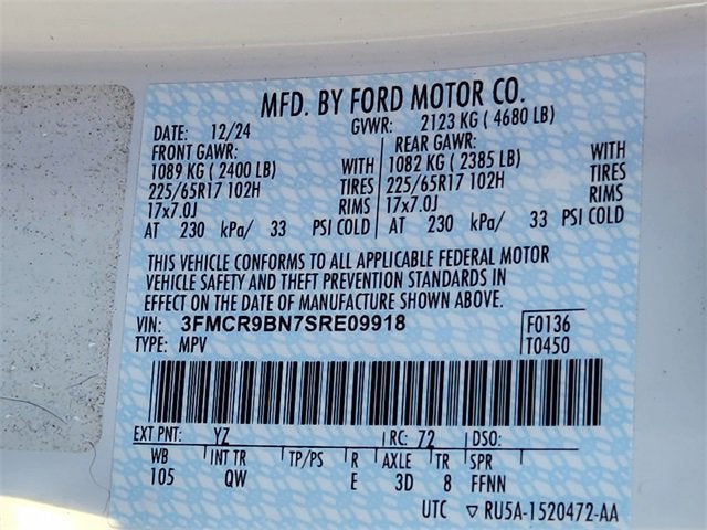 Priced below KBB Fair Purchase Price! Check actual equipment of vehicle before purchase. Items may be changed, removed or added., *CLEAN CARFAX*, *LOW MILES*, *****BREAKING NEWS!!!*****FLASH SALE*****RED TAG SALE!!!!****FLASH SALES****INVENTORY MUST GO!!****, ******RED TAG DEALS!!!*****GOING ON NOW!!!******, Bronco Sport Big Bend, 4D Sport Utility, 1.5L EcoBoost, 8-Speed Automatic, 4WD, Oxford White, Medium Lt Smoked Truffle Cloth, 4-Wheel Disc Brakes, 6 Speakers, ABS brakes, Air Conditioning, Alloy wheels, AM/FM radio: SiriusXM, AM/FM Stereo, Auto High-beam Headlights, Automatic temperature control, Brake assist, Cloth w/Easy-to-Clean Front Bucket Seats, Compass, Delay-off headlights, Driver door bin, Driver vanity mirror, Dual front impact airbags, Dual front side impact airbags, Electronic Stability Control, Emergency communication system: SYNC 4 911 Assist, Four wheel independent suspension, Front anti-roll bar, Front Bucket Seats, Front Center Armrest, Front reading lights, Fully automatic headlights, Heated door mirrors, Illuminated entry, Knee airbag, Low tire pressure warning, Occupant sensing airbag, Outside temperature display, Overhead airbag, Overhead console, Panic alarm, Passenger door bin, Passenger vanity mirror, Power door mirrors, Power steering, Power windows, Radio data system, Rear anti-roll bar, Rear Parking Sensors, Rear reading lights, Rear seat center armrest, Rear window defroster, Rear window wiper, Remote keyless entry, Security system, Speed control, Speed-sensing steering, Speed-Sensitive Wipers, Split folding rear seat, Steering wheel mounted audio controls, SYNC 4 w/Enhanced Voice Recognition, Tachometer, Telescoping steering wheel, Tilt steering wheel, Traction control, Trip computer, Variably intermittent wipers. CARFAX One-Owner. Oxford White 2025 Ford Bronco Sport Big Bend 25/30 City/Highway MPG 4WD 8-Speed Automatic 1.5L EcoBoost
